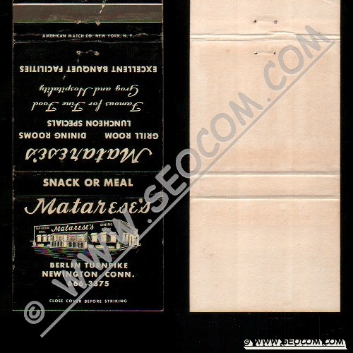 | (CT) - Berlin - Matchcover - Joseph's Fine Food Luncheon & Dinner Berlin & New Britain (ct_box1), (ct_mcflat1), |