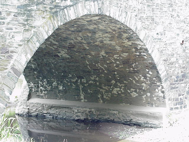 Sideview upstream | Detail of center arch, Upstream | Roadway (Mercer Road) going over bridge |