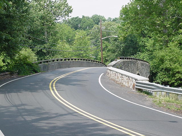 The next group of pictures are of another stone arch bridge in Princeton, New Jersey. This bridge also spans Stony Brook, just a little ways downstream of the one pictured above. I do not know when this one was built, but it appears to be of a similar construction design. This bridge is used for vehicular traffic, carrying Mercer Road.